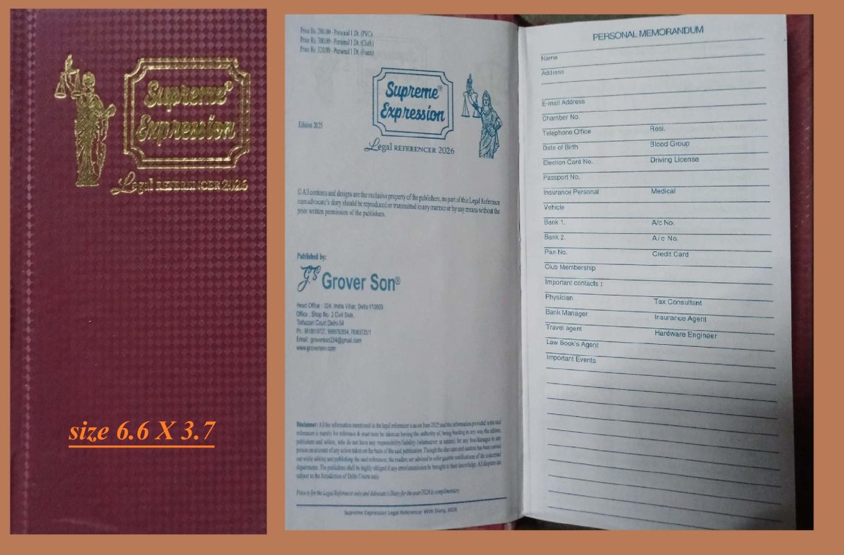 Supreme Expression Legal Referencer 2026 | Lawyer’s Coat Pocket Diary | Single Date | Size 6.6 * 3.7 Inches | Soft Hardbound with round corners | Ad Valorem Fee
