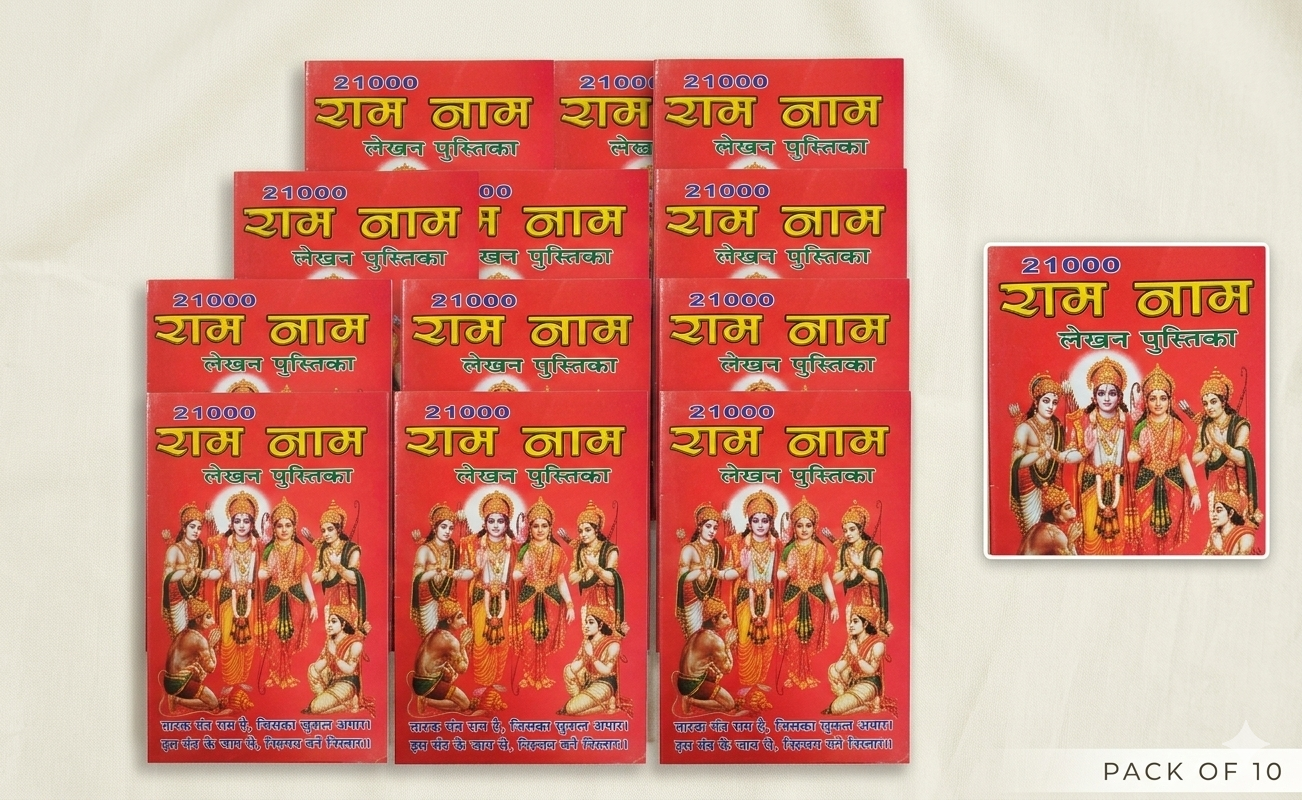 Is combo mein 10 kitabon ka set hai, jisme aap 21,000 baar “Ram” naam likh sakte hain. Ye mansik shanti aur adhyatmik unnati ke liye ek pavitra diary hai.