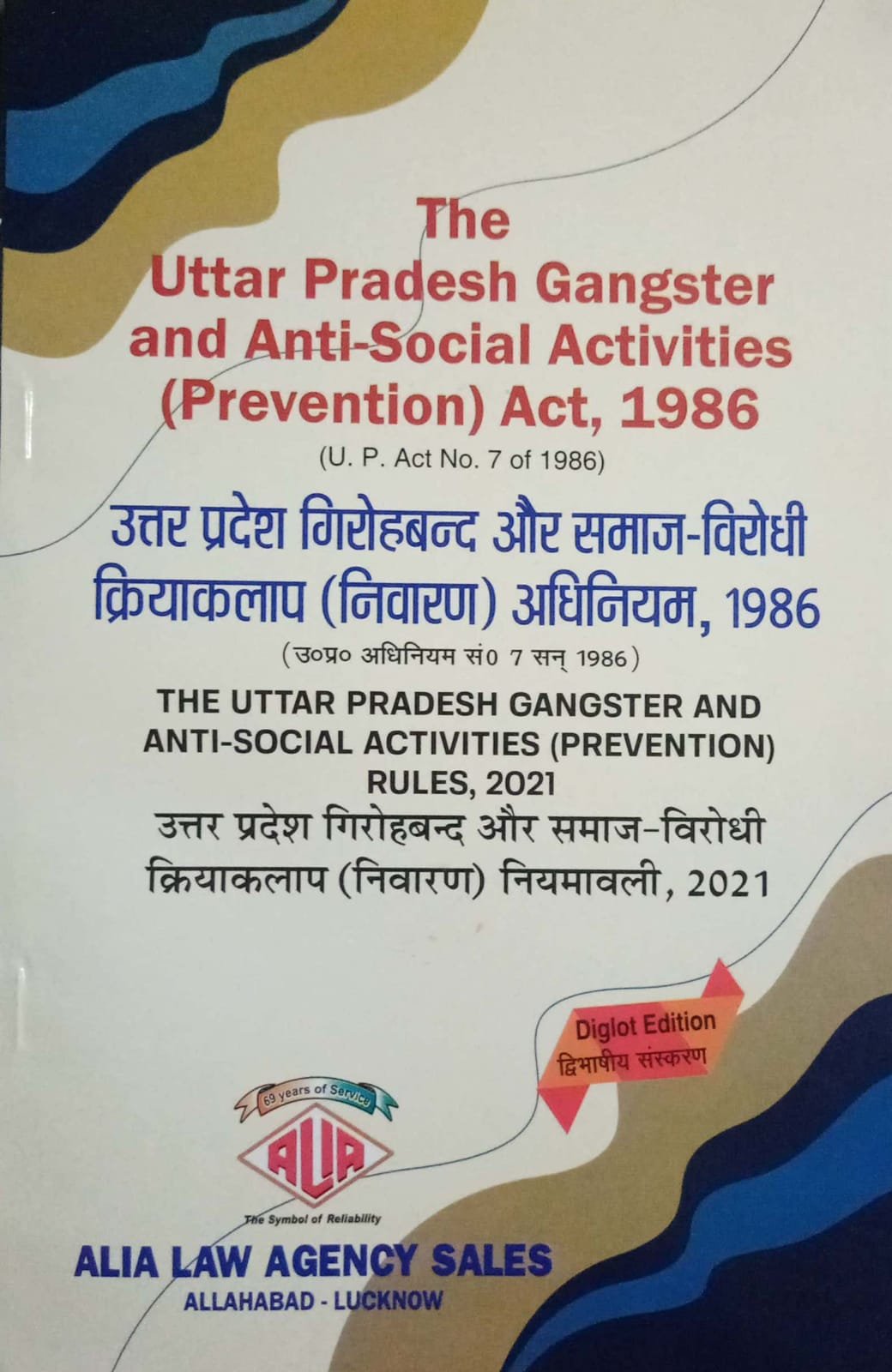 This book contains the complete text of The Uttar Pradesh Gangster and Anti-Social Activities (Prevention) Act, 1986 along with the latest Rules, 2021. Presented in a Diglot (English & Hindi) format, it is useful for advocates, students, police officials, and judicial aspirants. Published by Alia Law Agency Sales, known for reliable legal publications.