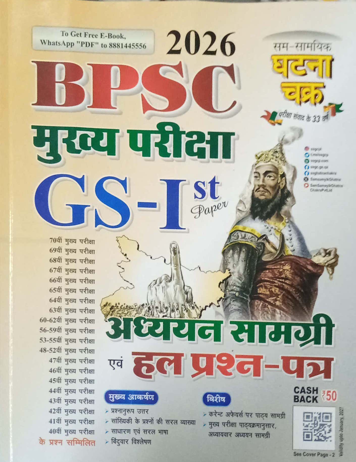 This book is specially designed for BPSC 2026 Mains (GS-I) preparation. It includes updated study material and solved question papers from previous BPSC main examinations, presented in simple and exam-oriented language for effective revision and answer writing practice.