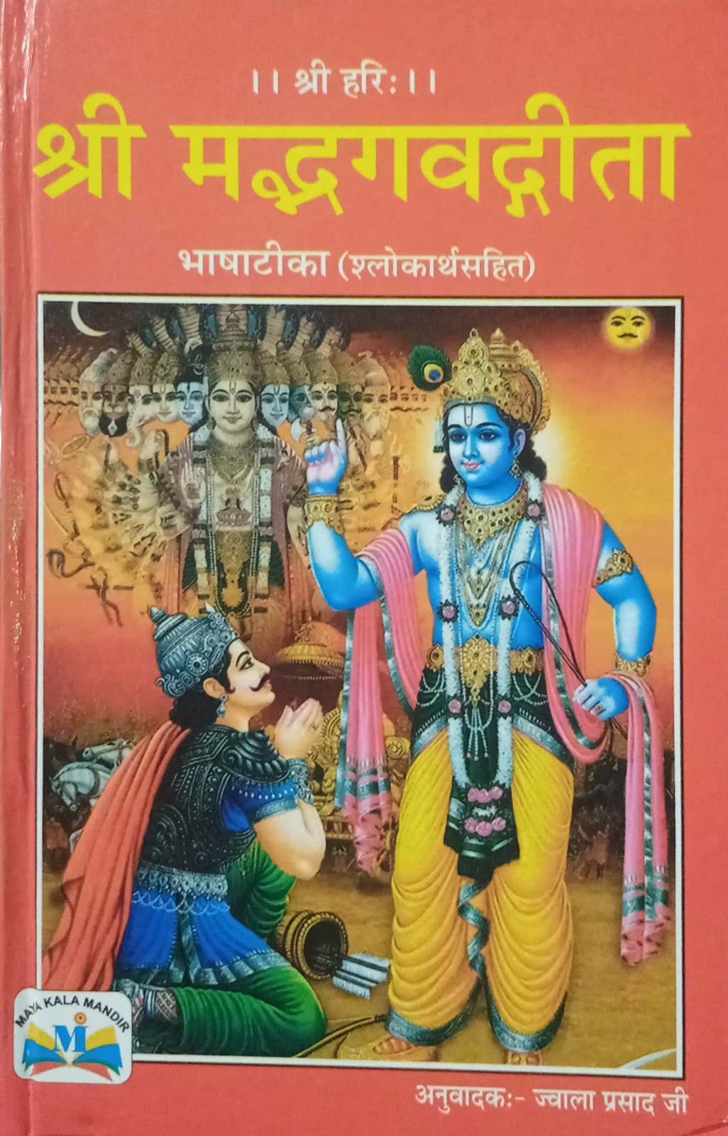 This edition of the Shrimad Bhagavad Gita is a profound spiritual guide featuring the original Sanskrit verses alongside a clear and easy-to-understand Hindi translation (Bhashatika). Translated by Jwala Prasad Ji, the book makes the complex philosophical teachings of Lord Krishna accessible to everyone. It includes the “Shlokarth,” providing the literal and contextual meaning of every verse, helping readers apply the wisdom of the Gita to their daily lives. Published by Maya Kala Mandir, it is a perfect addition to any home library for daily recitation or deep study.